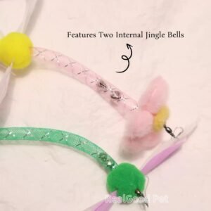 Cat Teaser Wand with Feather, Bells & Colorful Mesh Tube – Interactive Play for Cats