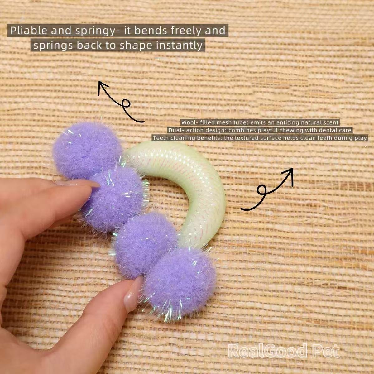 cat toysWool Scented Chew Toy for Cats – Elastic Mesh Dental Teaser, Enrichment Boredom Buster for Self Play & Teeth Cleaning